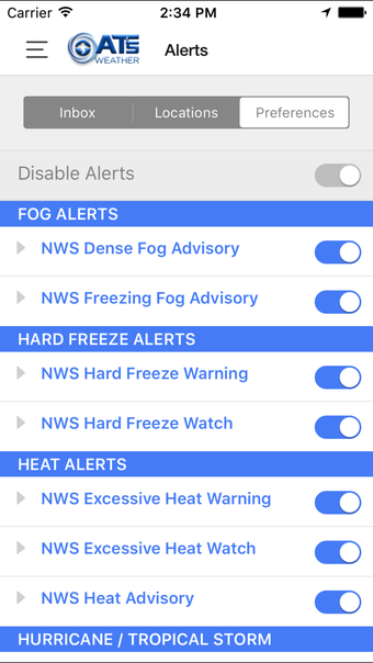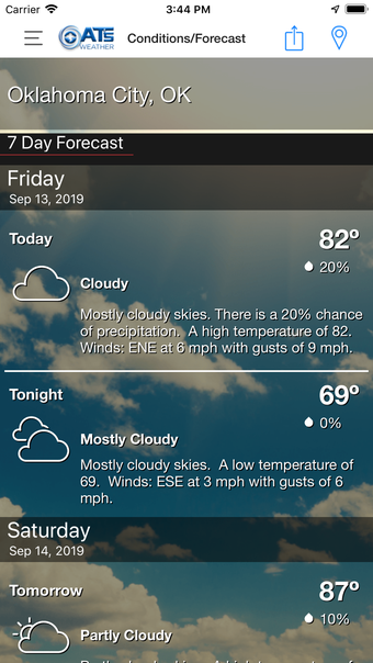 Aplicativo móvel ATsWeatherToGo para iOS